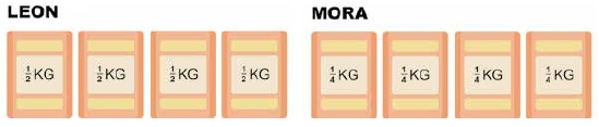 un paquete hay 3 kilos de yerba. Se reparte en dos bolsas iguales,